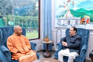 देश के सबसे बड़े राज्य उत्तर प्रदेश के मुख्यमंत्री योगी आदित्यनाथ सोमवार को देश के प्रधानमंत्री नरेंद्र मोदी से उनके आवास पर मुलाकात किया। इस बैठक में उत्तर प्रदेश की विकास योजनाओं के साथ-साथ आने वाले राजनीतिक कार्यक्रमों और रणनीति पर भी चर्चा होने की कयास लगाए जा रहे हैं। इसके अलावा सीएम योगी आदित्यनाथ देश के गृहमंत्री अमित शाह तथा भाजपा के जेपी नड्डा और भाजपा के कार्यकारी अध्यक्ष नितिन नवीन से मुलाकात की।
