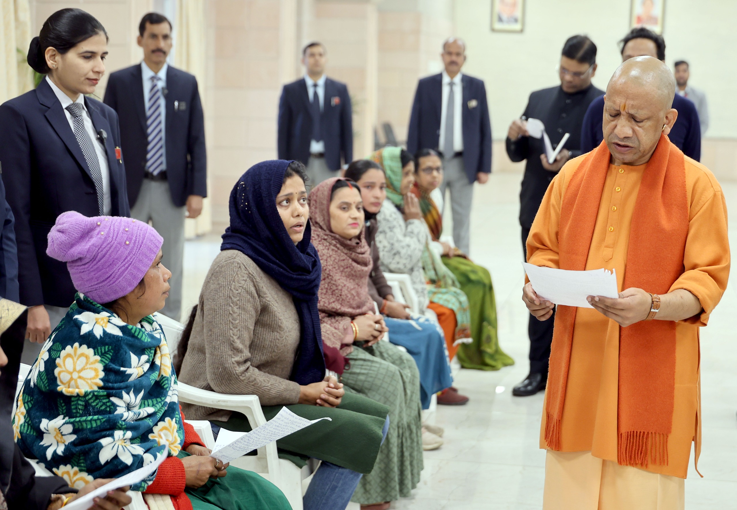 लखनऊ, 2 फरवरी। प्रदेश के मुख्यमंत्री योगी आदित्यनाथ ने सोमवार को ‘जनता दर्शन’ किया। एक-एक कर सभी प्रार्थियों से उन्होंने मुलाकात की, उनका प्रार्थना पत्र लिया और समस्याओं के उचित निस्तारण का निर्देश दिया। मुख्यमंत्री ने जिलाधिकारियों, राजस्व से जुड़े अधिकारियों व पुलिस प्रशासन को निर्देश दिया कि सभी मामलों को गंभीरता से लेते हुए लोगों की समस्याएं सुनें और जांच कर दोषियों पर कठोर कार्रवाई करें। ‘जनता दर्शन’ में पहुंची एक बच्ची ने मुख्यमंत्री योगी आदित्यनाथ को सैल्यूट किया। इस पर सीएम योगी ने उसे आशीर्वाद देते हुए खूब मन लगाकर पढ़ाई करने को कहा।