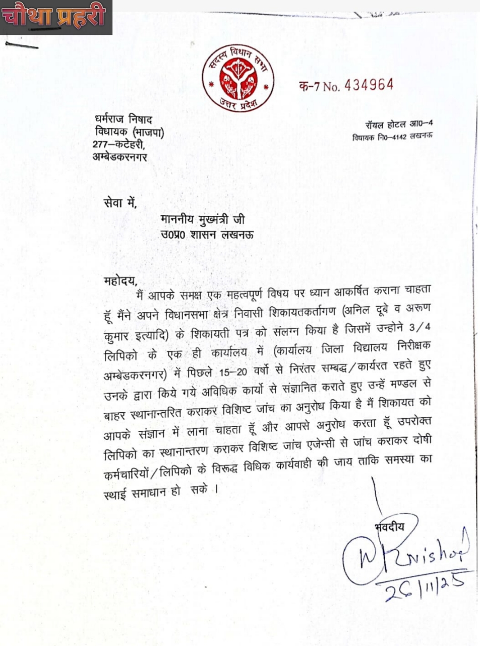 अंबेडकरनगर न्यूज : कटेहरी के भाजपा विधायक ने जिला विद्यालय निरीक्षक के बाबूओं की मुख्यमंत्री से की विशिष्ट जांच कराये जाने की मांग November 27, 2025 No Comments